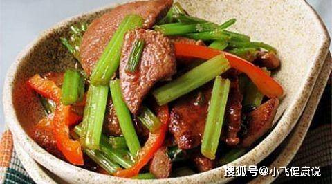 1、芹菜洗淨切斷,紅椒切絲,豬肝切片