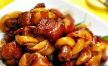 1、把豬五花肉燒皮並刮洗干淨後,切成塊下入油鍋,煸炒至出油才加薑片、蔥節、料酒、香料、干辣椒節、老抽、鹽、白糖和鮮湯,改以小火長時間地燒製成紅燒肉。另把千張打成結,入沸水鍋里汆一水便撈出。