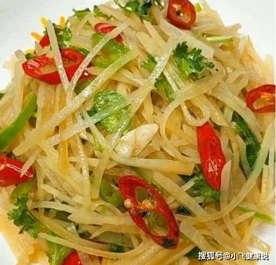 1、土豆削皮後切成薄片,然後改刀切成絲放入盆中沖洗掉澱粉,然後撈出瀝水。