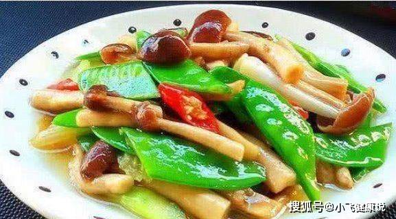 食材:茶樹菇、荷蘭豆、小紅椒、西芹、油、鹽等