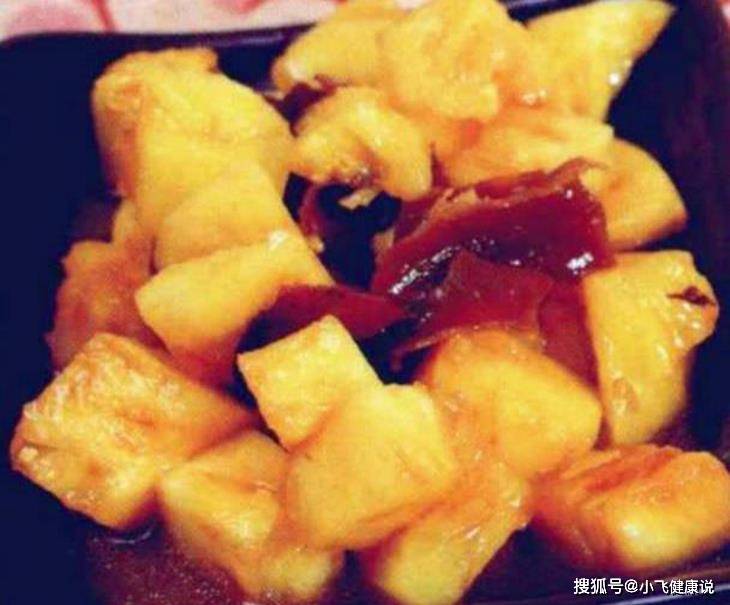 1、木耳浸泡切片,菠蘿去皮切塊。