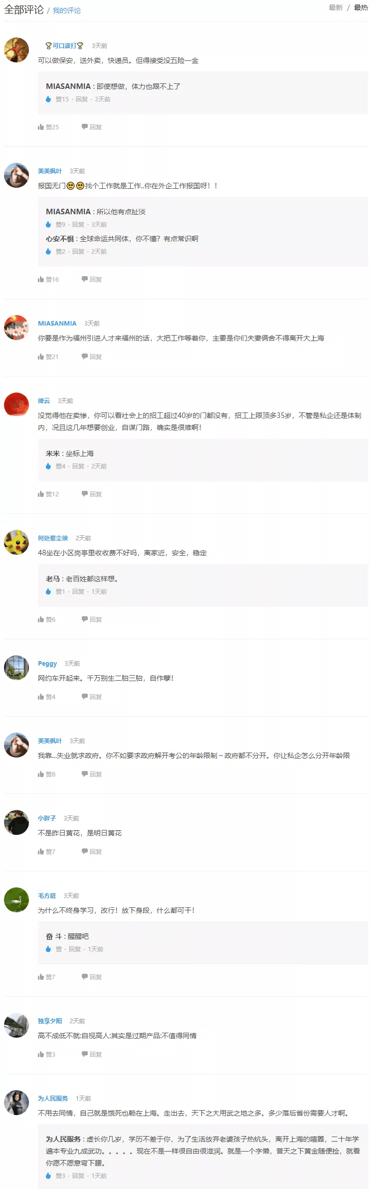 首先,針對40-50歲的人失業,政府早就有4050工程,上海還算最早落實的,只是他不願意去而已。