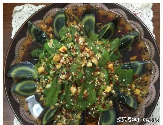 3.皮蛋裝盤後可把煎好的青椒用手撕條,煎好的青椒燙一定要涼後撕。
