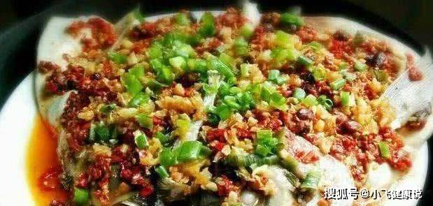3. 蒸鍋加水燒開,盤子墊上蔥段、薑片,放魚頭上鍋加蓋用大火蒸,蒸至5分鍾時,開蓋倒掉盤子裡蒸魚的腥水,鋪上剁椒和炸過姜、蒜末,蓋鍋大火再蒸15分鍾。
