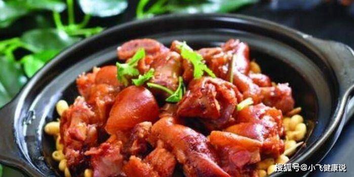 食材:豬蹄四個(剁成小塊);黃豆一碗;老抽;陳皮;白酒兩勺;鹽兩勺;冰糖兩勺;桂皮一片;八角兩只