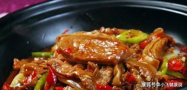 2、熱鍋放少許油,放入豬肉進行煸炒;待豬肉變色後,加入芹菜、青紅辣椒繼續翻炒