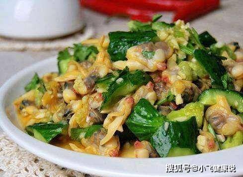 食材:嫩黃瓜、大蒜、沙蛤蜊、鹽、糖、陳醋、涼拌醬油、香油