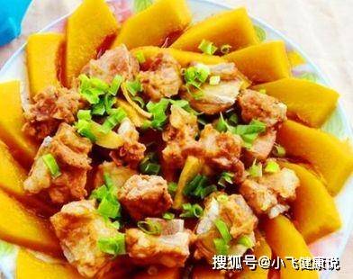 6.醃好的排骨放在南瓜上,蔥白段和薑片放排骨上