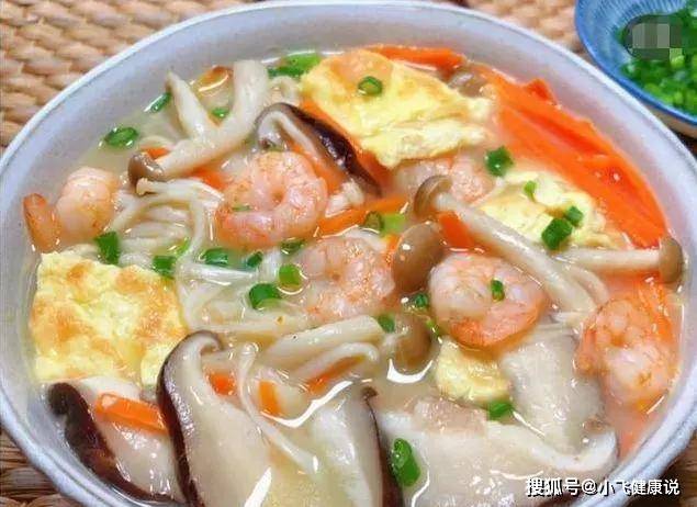 食材:金針菇、 香菇、 蟹味菇適量、 胡蘿卜半個、 雞蛋1個、 蝦仁10個、 蔥末少許 、鹽少許