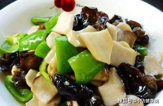 材料:杏鮑菇3根、青椒1根、木耳少許、食鹽、蚝油、生抽、水澱粉