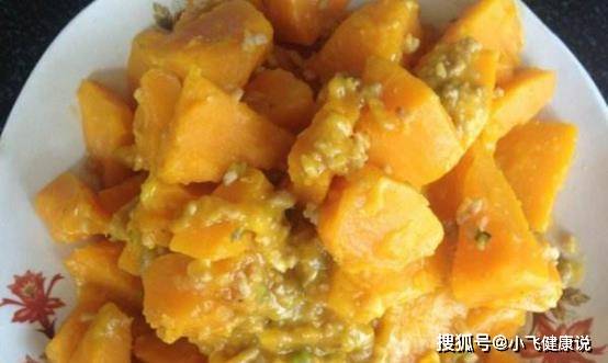 4.蒸好的南瓜從鍋中取出,碾成南瓜泥。