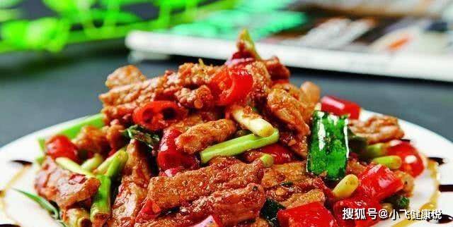 10、 聞到辣椒香味後,把撈起牛肉重新入鍋大火翻炒一分鍾,下少許鹽,雞精、3克生粉拌少許水