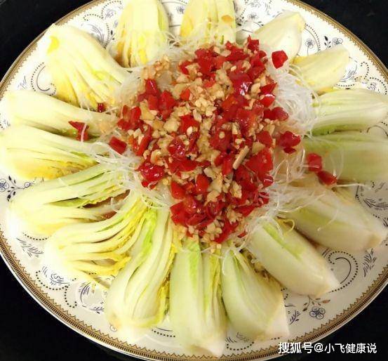 2.娃娃菜切掉頭,剝片。鹽水浸泡二十分鍾後洗淨,瀝干水份。