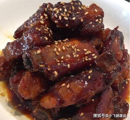 食材:肋排、薑片、蔥、料酒、色拉油、老抽、生抽、白砂糖、白芝麻
