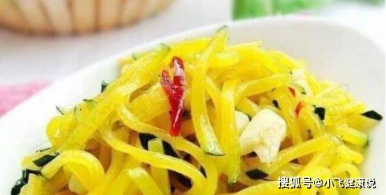 3.南瓜絲放水中浸泡2分鍾 撈出控水 備用