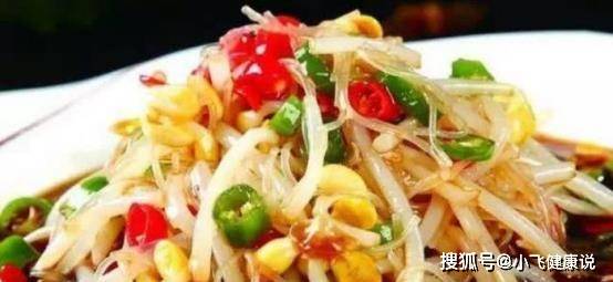 食材:粉絲1束,油炸花生米(去衣)、香菜葉各少許,紅椒,野山椒、豆芽,辣椒油、陳醋、食鹽、麻油各適量。