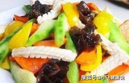 食材:木耳、魷魚、紅蘿卜、彩椒、姜、蒜