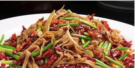 食材:豬肚、玉蘭片、黃瓜、紅尖椒、鹽、白砂糖、豆瓣醬、姜、大蔥、雞精、花椒、醋、辣椒、植物油