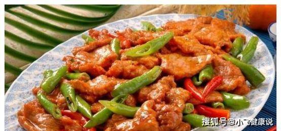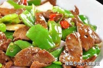 4.利用鍋中剩下的底油,下入姜蒜片,煸出香味,再下入杭椒和小米辣丁,翻炒均勻,感覺配菜均勻裹上油色時,下入豬肝,繼續翻炒1-2分鍾。