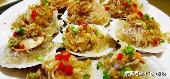 4、扇貝洗好後放在盤里,把泡軟的粉絲和爆好的蒜蓉放在貝肉上,再在上面撒上一些青椒和紅椒,蒸鍋里的水歡騰後旺火蒸5分鍾即可。