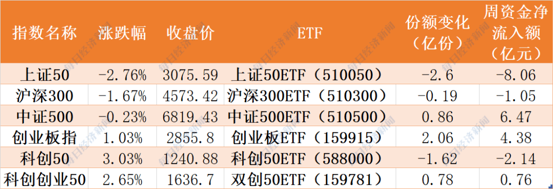 整體看來,本周市場表現分化,但資金多處於觀望狀態,以區間成交均價計算,6隻指數ETF本周合計淨流入約0.36億元,其中上證50ETF淨流出8.06億元,中證500ETF淨流入6.47億元。