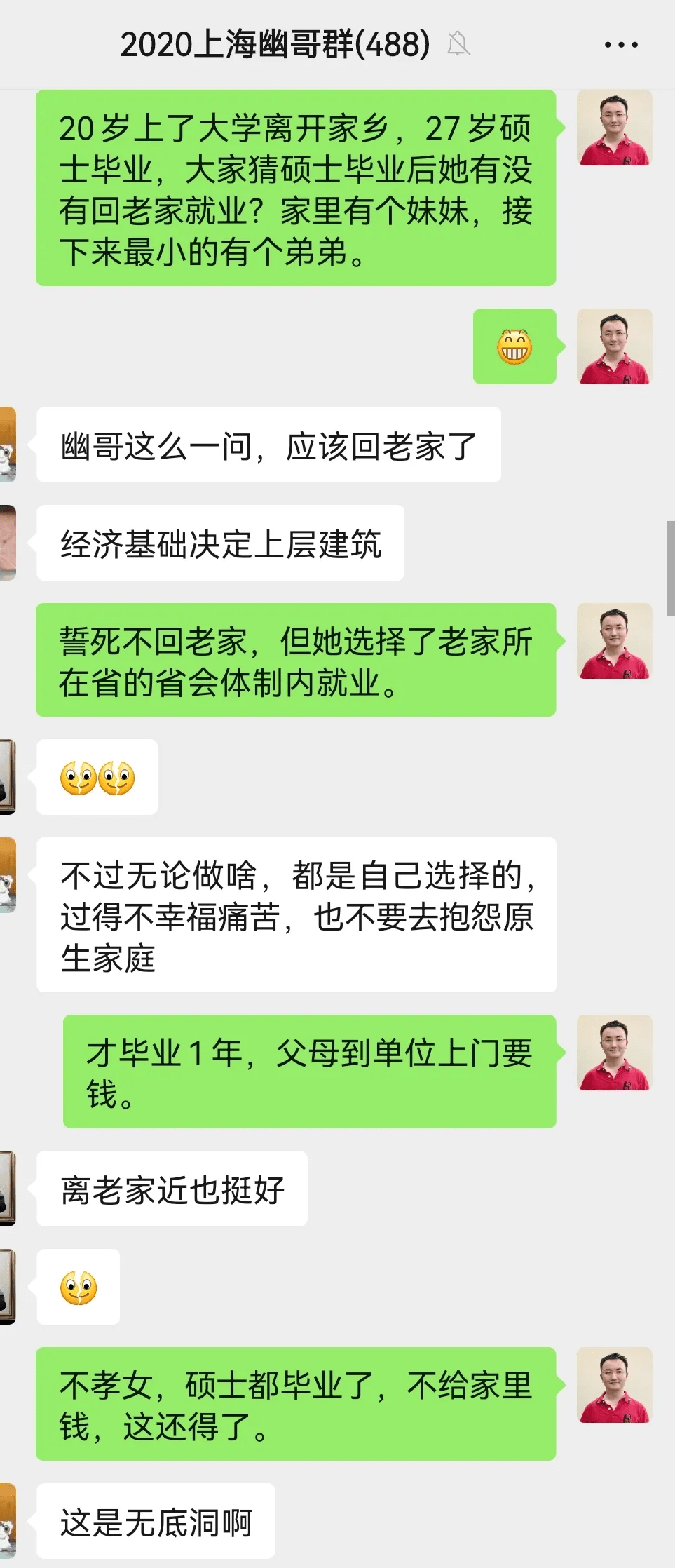 後來我的很多女群友這方面稍微有了點悟性,不會無理由給家裡錢了。