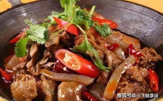 2.鍋里油燒熱,下花椒,八角,紅辣椒和薑片,出香味之後,立刻下醃好的鴨子翻炒至表皮變色