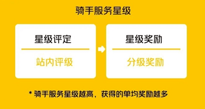 騎手在收到用戶差評以後,不會扣錢而是改為扣分。並且會根據騎手的配送質量等方面來制定星級獎勵。若星級等級越高,那麼平均每單獲得的額外獎勵也會增加。