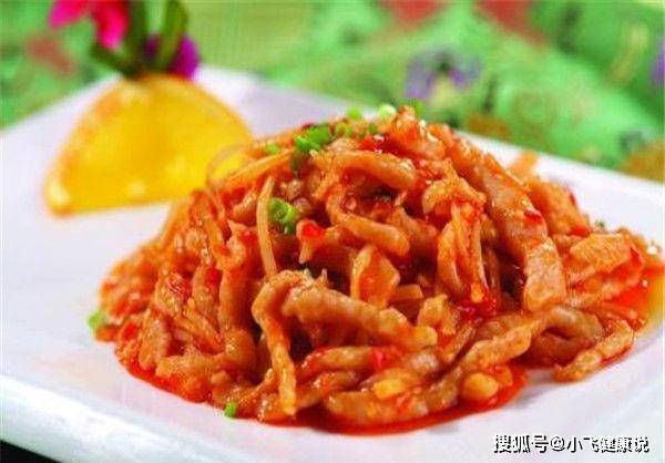 1、里筋肉切絲,加料酒、水澱粉攪拌均勻後,醃制五分鍾。