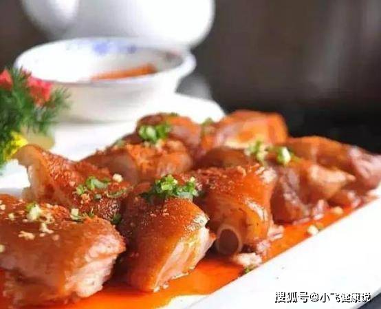 1、把黑豬腳治淨,剖開納盆後,加柱侯醬、排骨醬、芝麻醬、花生醬、鹽和姜蔥醃8小時,待上籠蒸熟後,取出晾涼。