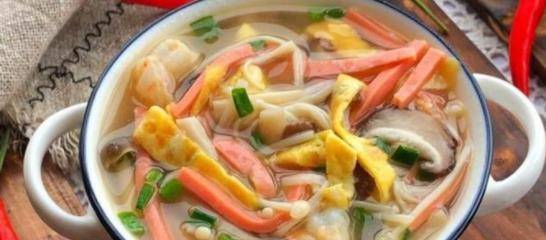 3、放雞蛋火腿絲、蝦仁、雞蛋絲。加生抽調味。加1g鹽調味。煮開撒蔥花。