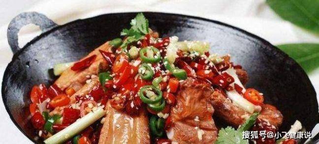 4、在鴨油裡面放入干辣椒,然後把花椒炒香,再把已經醃好的肉放進去炒熟,放入老抽、啤酒,將鴨肉淹過,然後調成小火收汁,最後放入青椒翻炒就可以了。