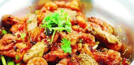 3.鍋里放少量油,放切碎的干紅辣椒和花椒,炸出辣味後放蔥姜,大蝦;放適量辣椒醬和少量鹽煸炒幾下,炒勻,撒點香菜即可關火出鍋。