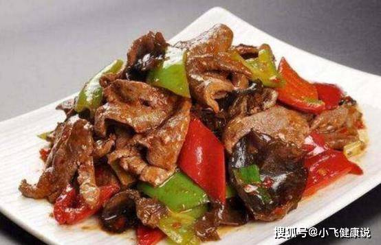 5.倒入切成薄片的豬肝,翻炒,放入料酒。