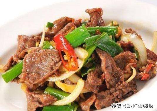 2.鍋內油熱之後炒香一半蔥絲和蒜末。放入牛肉炒到九成熟,加入剩餘的蔥段,生抽,鹽,雞粉,白胡椒,香油。翻炒,出鍋。