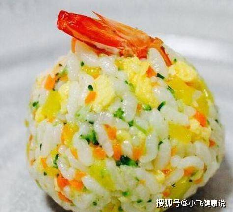 食材:米飯150克、鮮蝦5個、豌豆20克、胡蘿卜20克、油適量、鹽適量