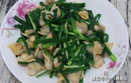 5、熱鍋涼油放入姜絲爆香,放入韭菜翻炒幾下,因為蜆子是熟的,避免炒老了所以後放蜆子。