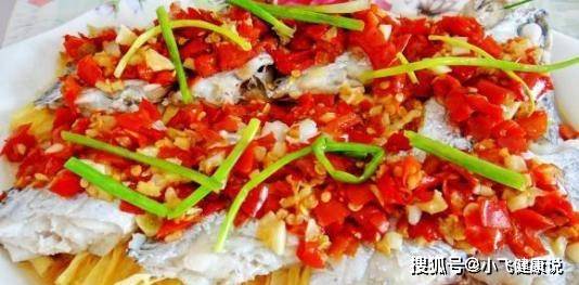 4.取一深底的盤子,擺入帶魚(姜絲扔掉不要了),撒上2大勺剁椒,入鍋蒸熟。一般上汽後八分鍾左右帶魚就熟了。