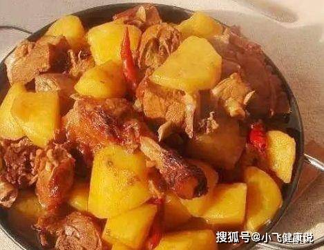 1、將土豆去皮洗淨切塊,鴨重新切成小塊。鍋內倒油後放蔥姜紅椒八角爆香,放入鴨塊。