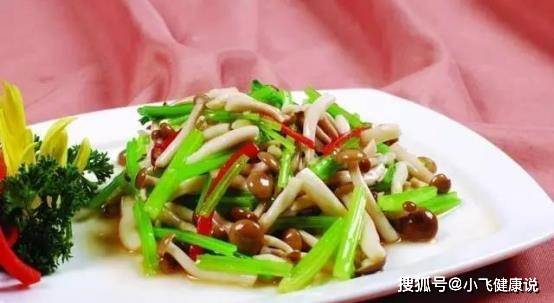 食材:西芹、蘑菇、干辣椒、油、姜、蒜