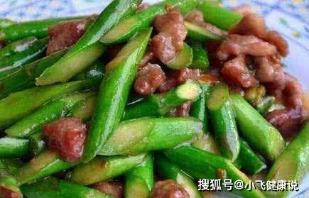 3.熱油,翻炒肉片,後放入蘆筍和少量清水,炒熟出鍋