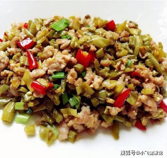 食材:酸豇豆;豬肉餡;小辣椒;花椒;蔥姜蒜;料酒;鹽;糖;雞精;胡椒粉;