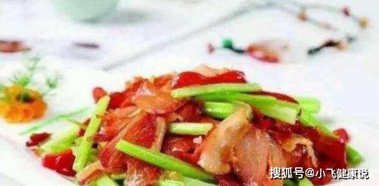 3、倒入芹菜翻炒至芹菜變色,加少許鹽調味,臘肉會比較咸一點,少加鹽,最後扔芹菜葉子,炒勻出鍋即可.