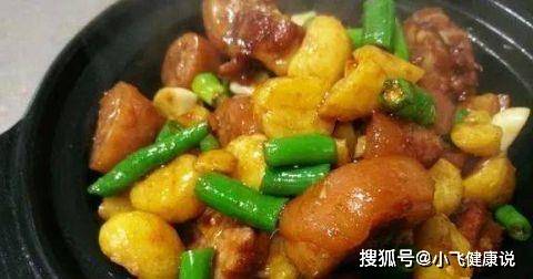5.鍋里留油,下蒜頭,下豬尾板栗,大火燒開,小火微。