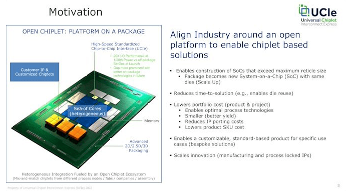 UCIe聯盟創建的初衷是將小晶片打造成開放,互聯的產業發展生態,讓不同客戶也能通過各類小晶片產品滿足更多的需求。