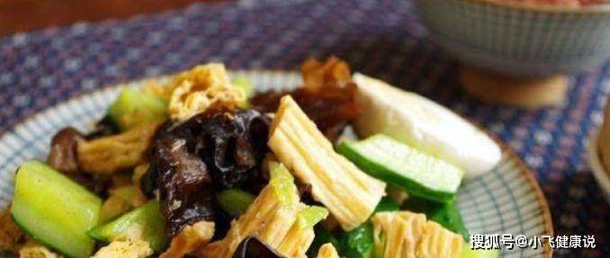 食材:腐竹,木耳,黃瓜,蔥花,醬油,糖,鹽,澱粉,