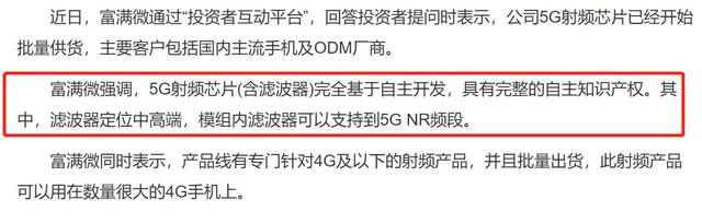 而富滿微正式官宣自研的5G射頻晶片量產並交付,主要客戶是小米等國內手機廠商,這意味著其量產的5G射頻晶片可以用在手機等移動設備上。