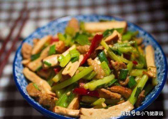 6、將切段香芹倒入鍋中,與鍋中材料快速翻炒均勻,鍋內淋入少許生抽炒勻,即可起鍋;