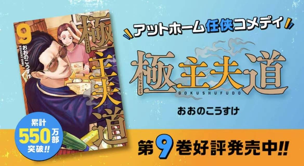 大野浩助創作的漫畫《極主夫道》第9卷,已於3月9日發售。津田健次郎向龍,野川雅史PV在YouTube公開,同時也公開了第9卷收錄了龍用羊毛氈做貓,讓討厭蔬菜的少女吃蔬菜等小故事。