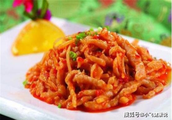 1、里筋肉切絲,加料酒、水澱粉攪拌均勻後,醃制五分鍾。